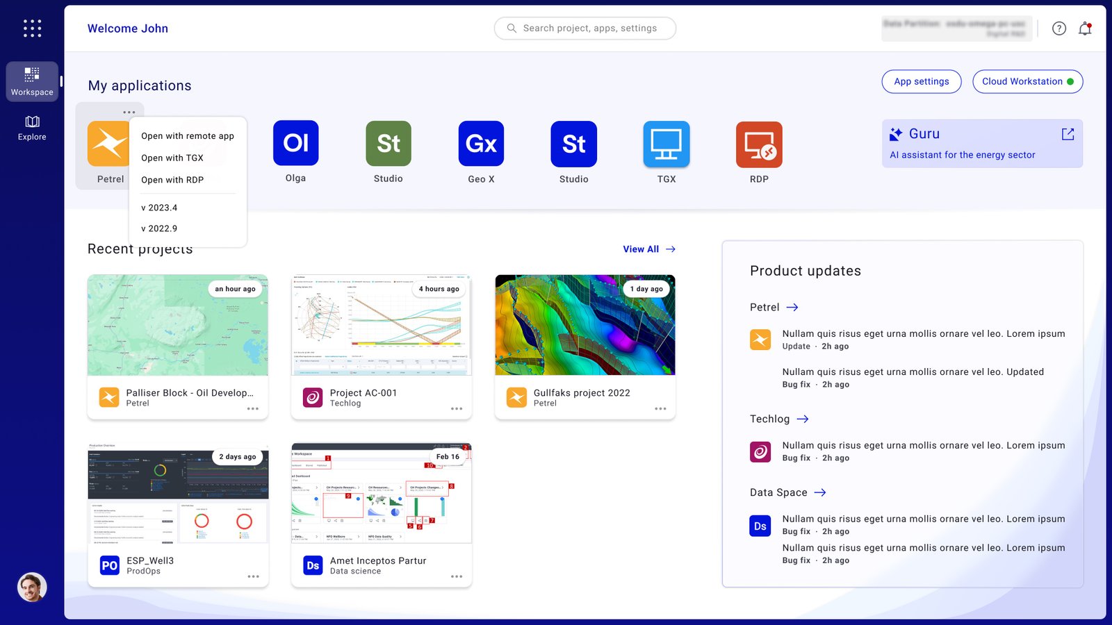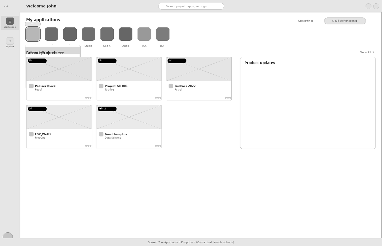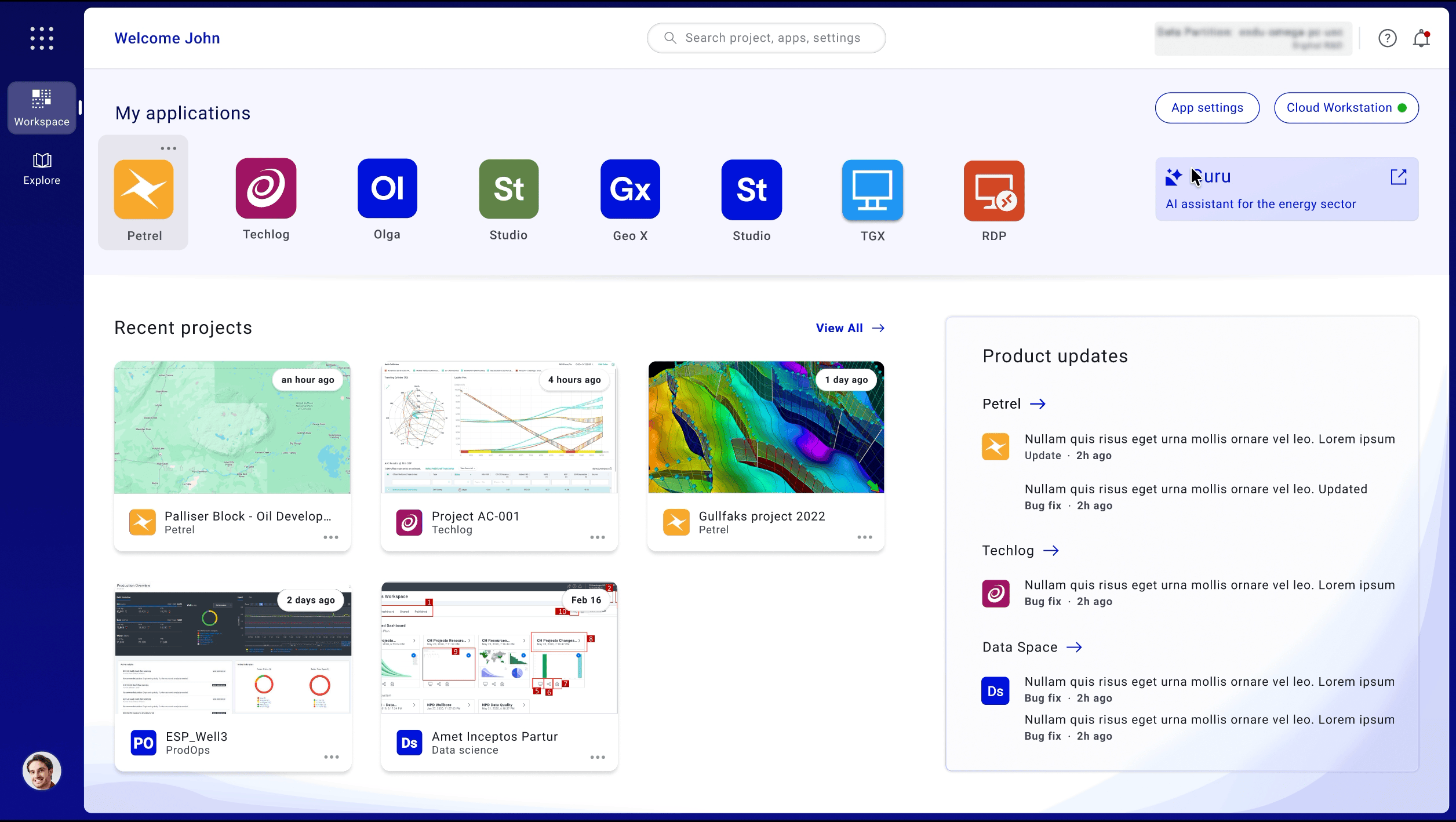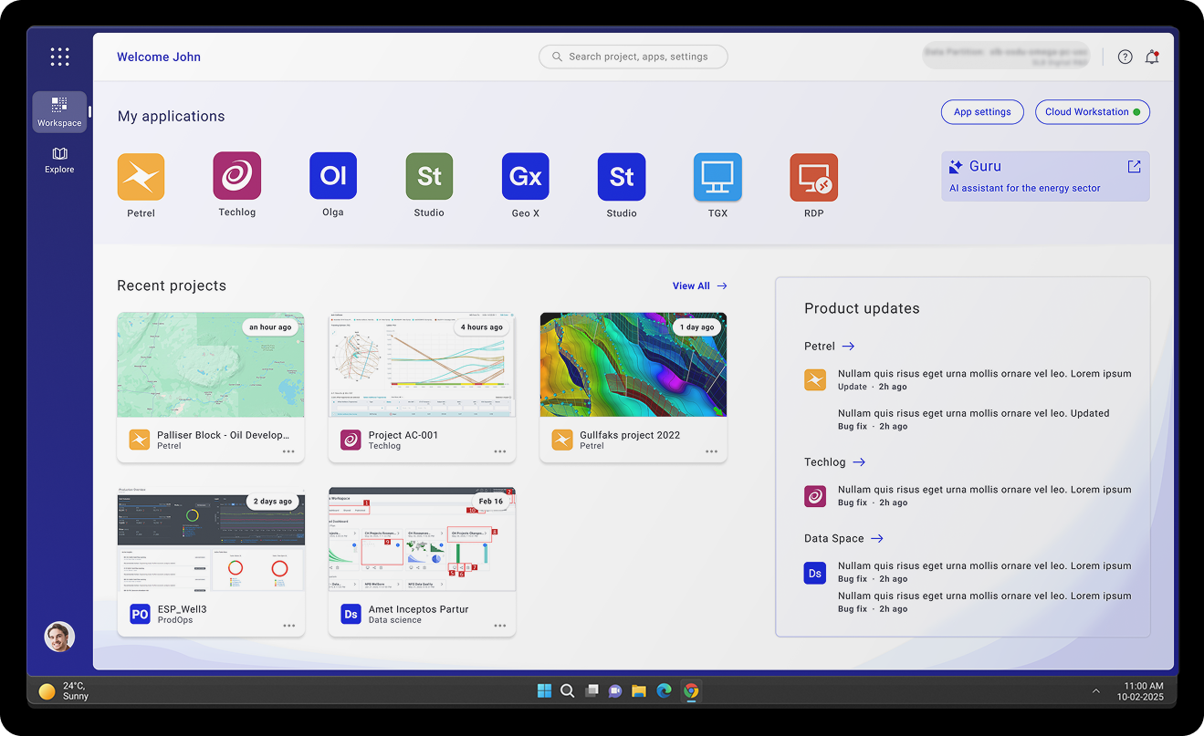 Enterprise users — geologists, geophysicists, and technical operators — needed a faster and clearer way to discover applications, resume recent work, view updates, and monitor product status. But the existing workspace experience was fragmented, forcing users to rely on manual search, repeated navigation, and disconnected tools just to begin everyday tasks.
