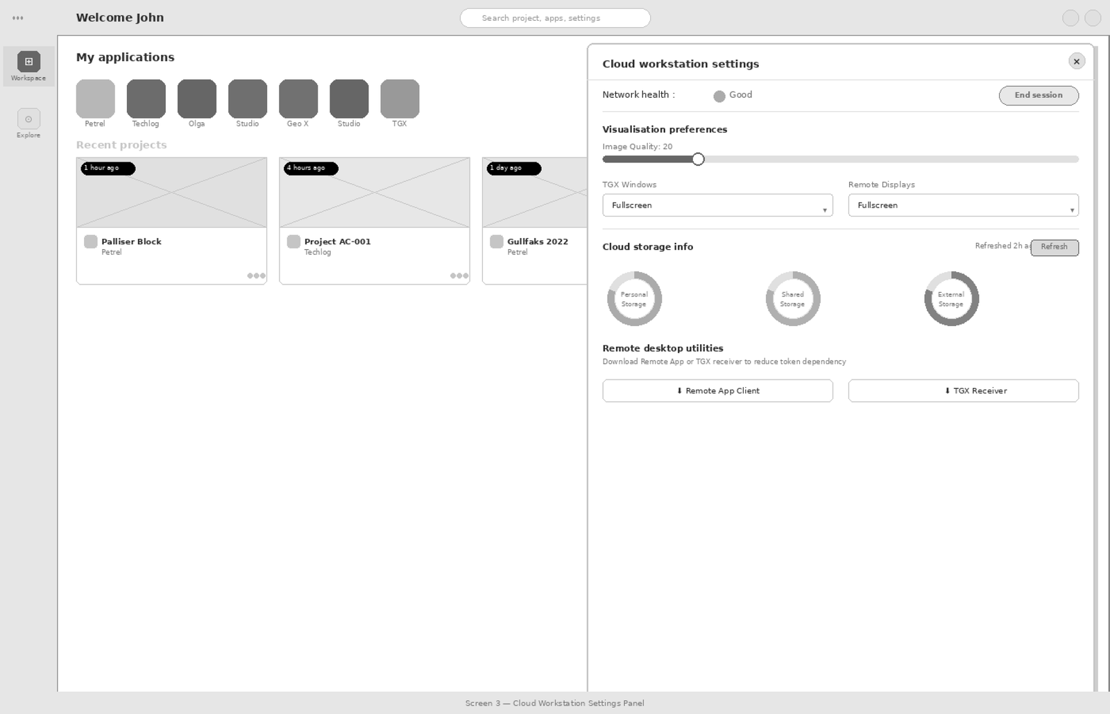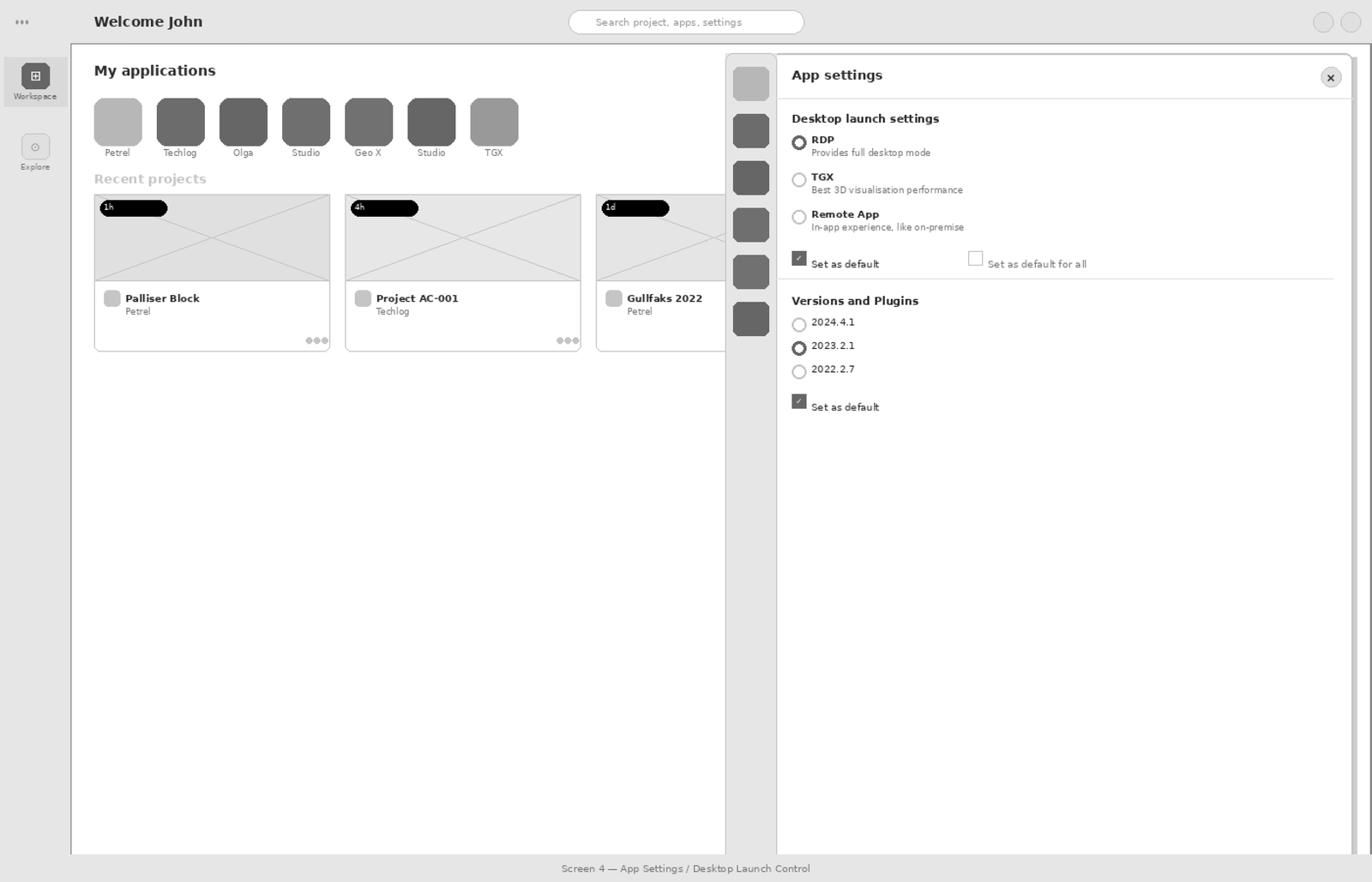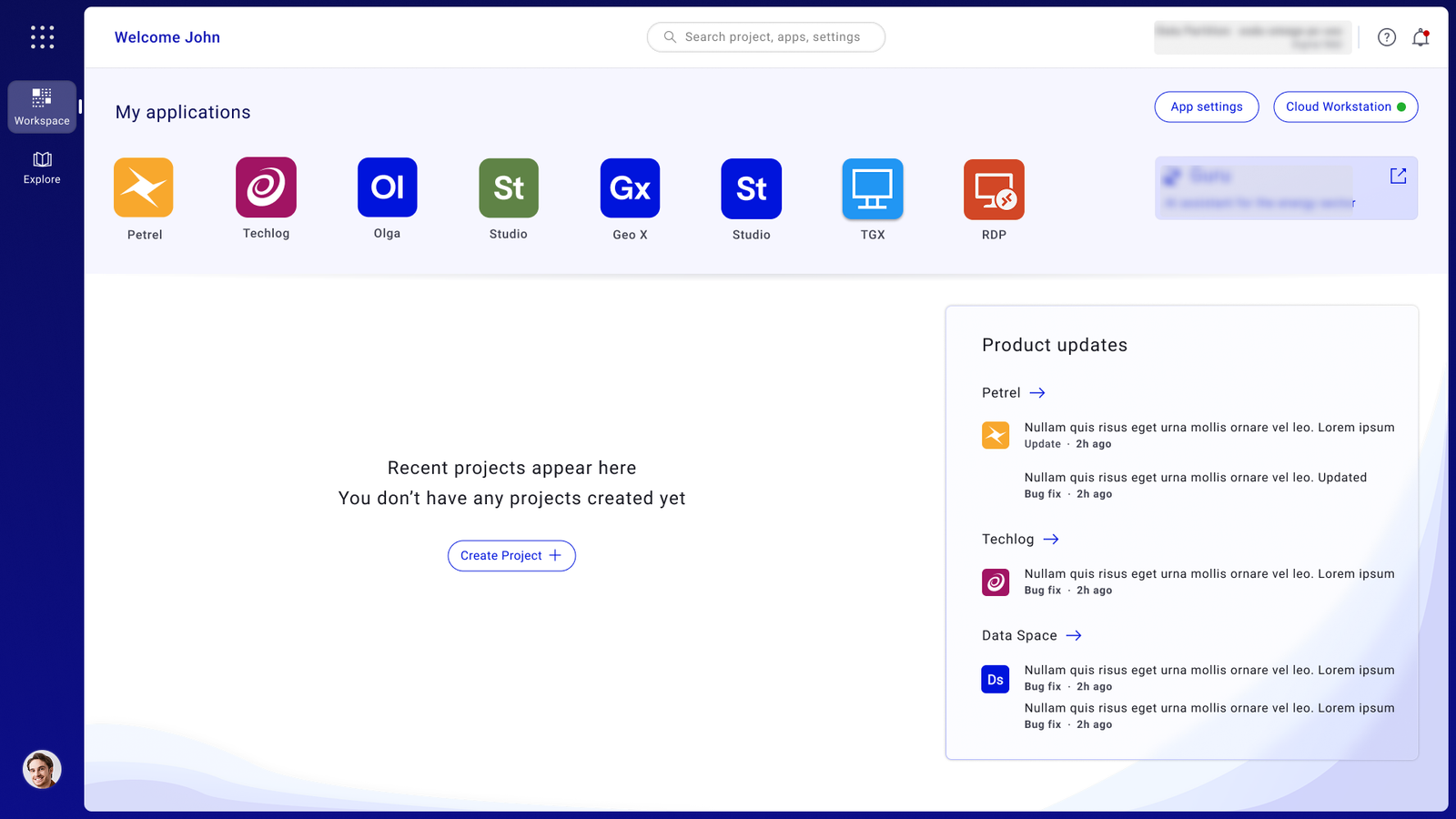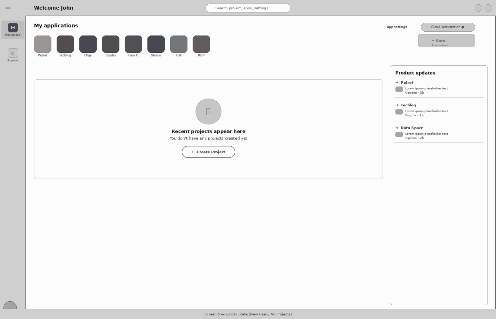 Enterprise users — geologists, geophysicists, and technical operators — needed a faster and clearer way to discover applications, resume recent work, view updates, and monitor product status. But the existing workspace experience was fragmented, forcing users to rely on manual search, repeated navigation, and disconnected tools just to begin everyday tasks.
